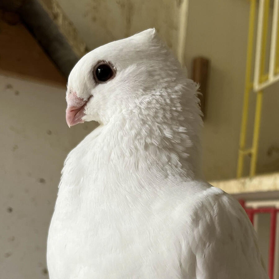Lucerne's are a breed originating from Switzerland and are bred for their docile temperament. These white Lucerne's are very tame and hand friendly, and would make good companions or show birds.