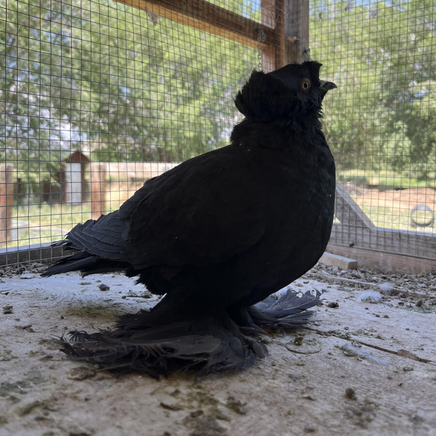 My OGO are decent NPA show quality and are usually bred without a chest frill and have very little dewlap(depending on which pair they are bred from) I breed these birds only because of how friendly they are.